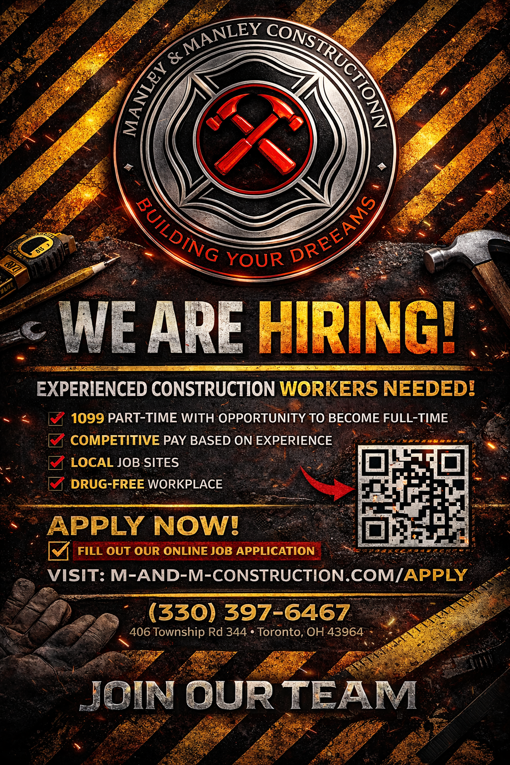 Ready to lay the groundwork for a rewarding career? Discover opportunities at Manley & Manley Construction, where we value skill, teamwork, and growth. Join our family and be part of a company with over 50 years of combined experience building in Toronto, Ohio.
